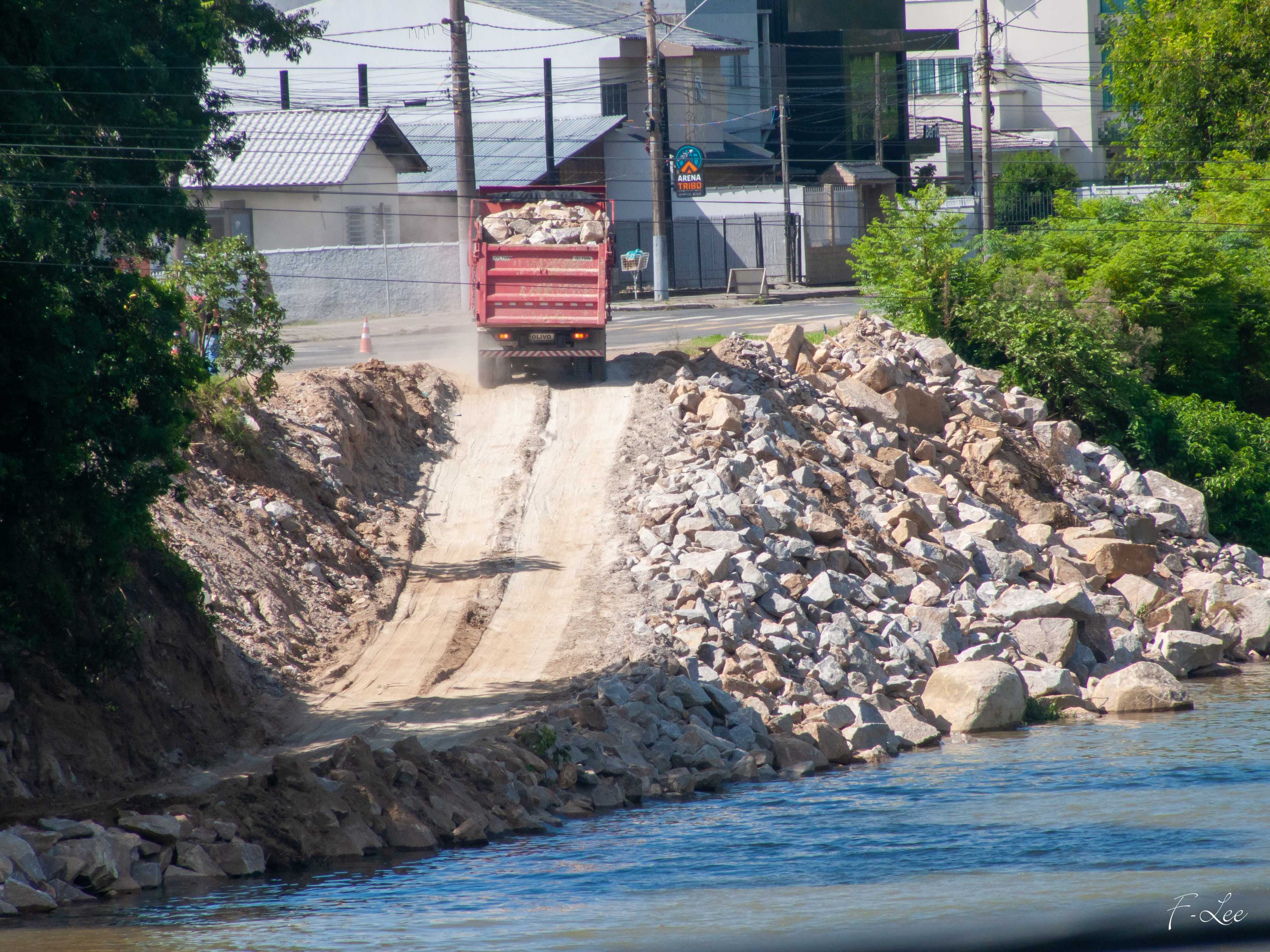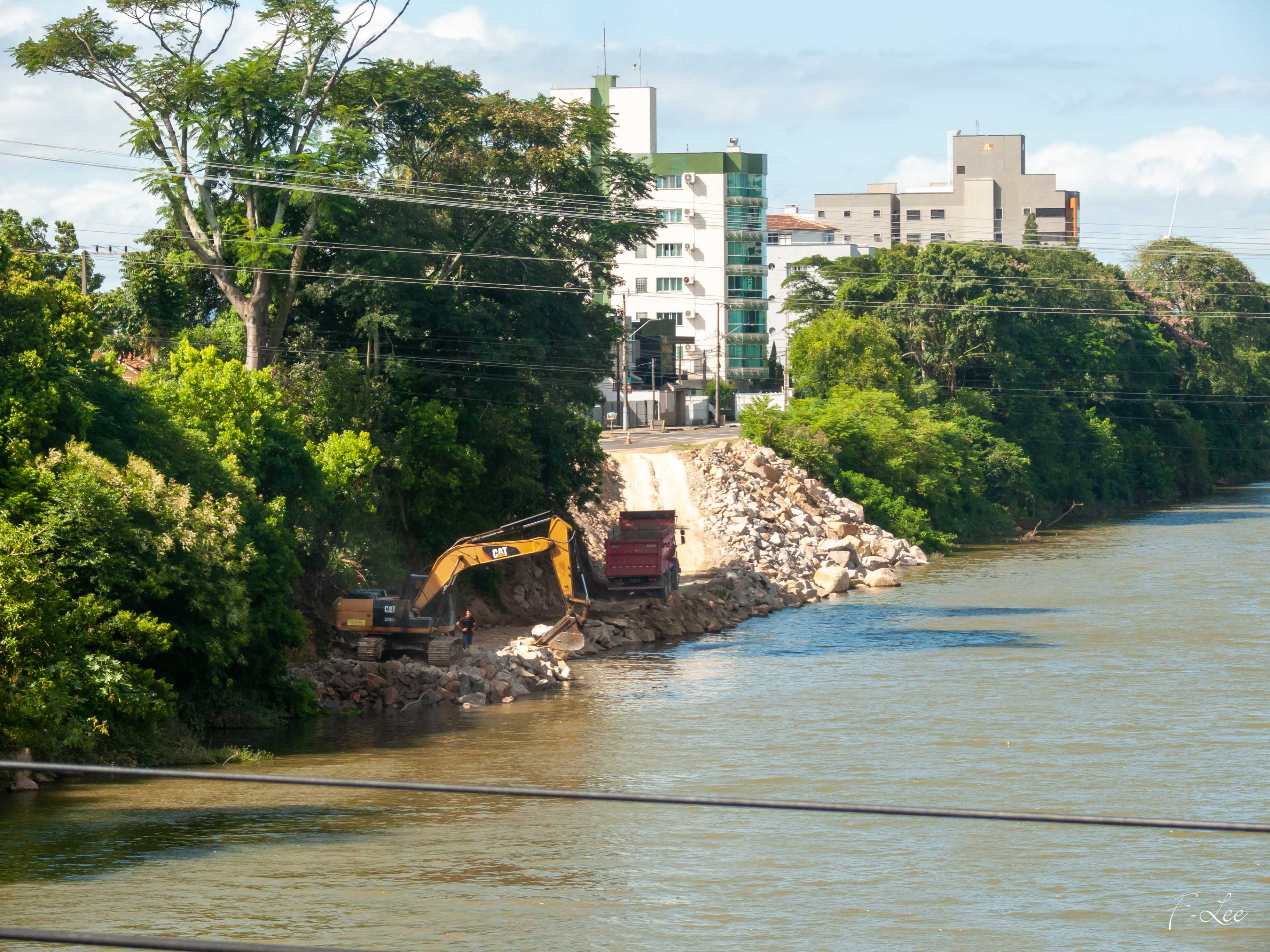 Obras de enrocamento: rio Tubarão, SC.