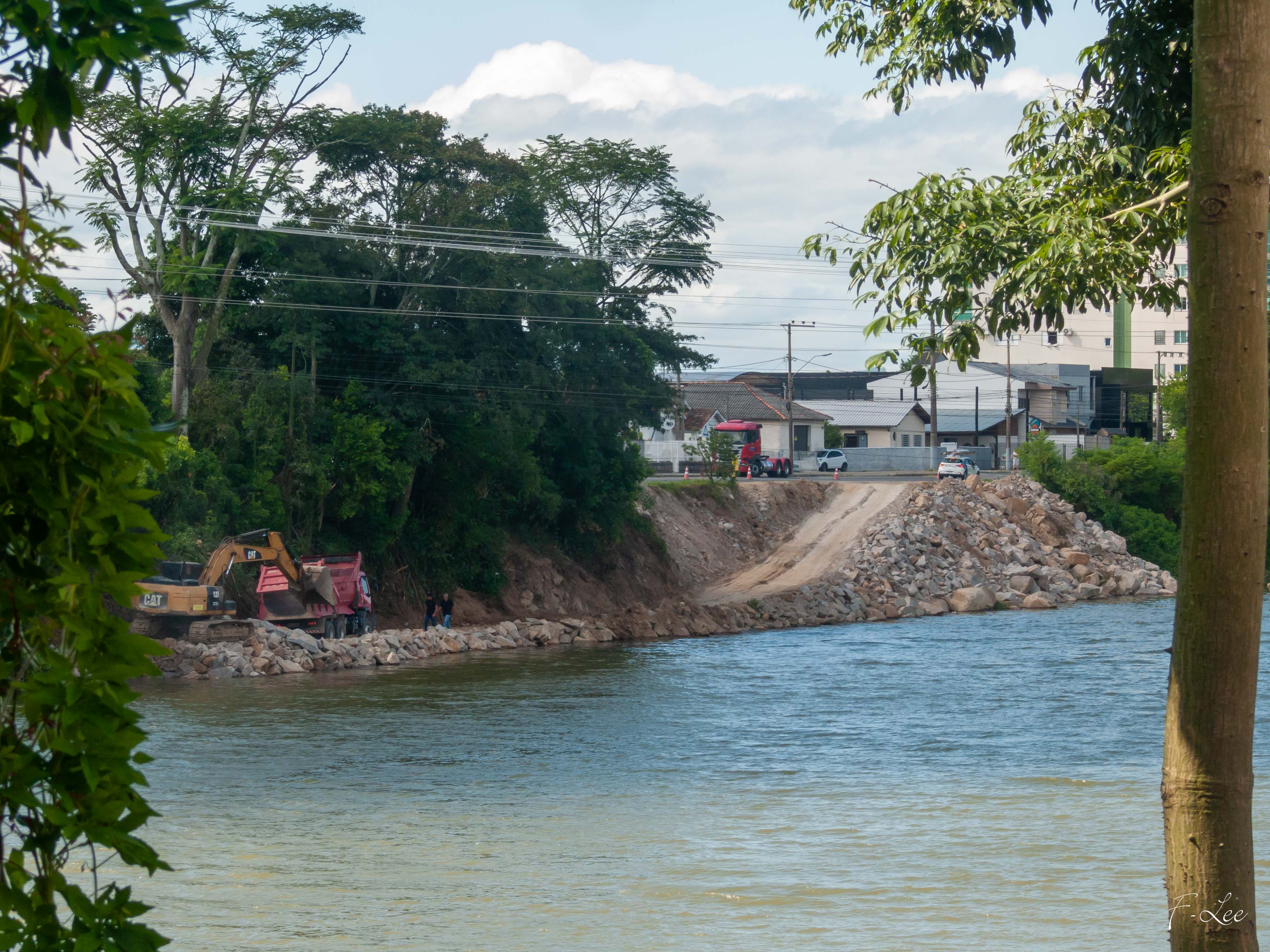 Obras de enrocamento: rio Tubarão, SC.
